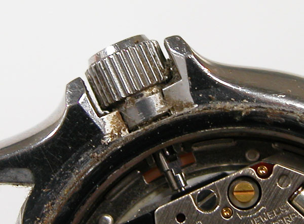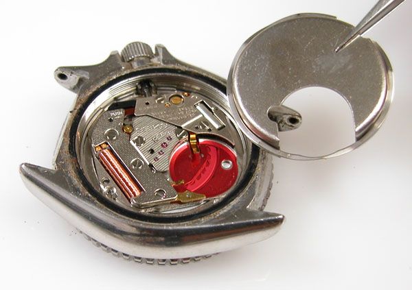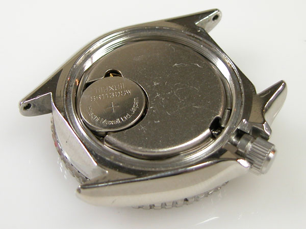 綺麗になったケースにムーブメントを戻して電池格納部をチェックします。