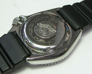 裏蓋はスクリューバックで右が裏蓋記載。
