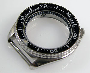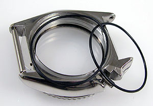目盛リングがあるのでケースのみの洗浄はできず。パッキンは交換してシリコン塗布をしてケースに戻します。裏蓋を閉め洗浄レベルでの水漏れは無いかチェックします。