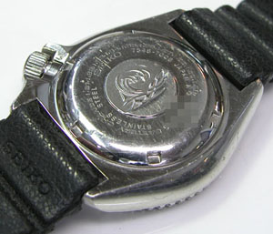 裏蓋はスクリューバックで右が裏蓋記載。