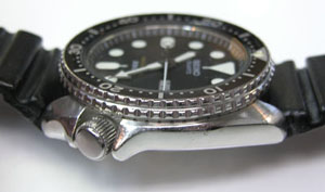 ダイバーですから竜頭のねじ込み部分が大きい。