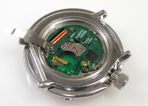 綺麗になったケースにムーブメントを戻して電池格納部をチェックします。