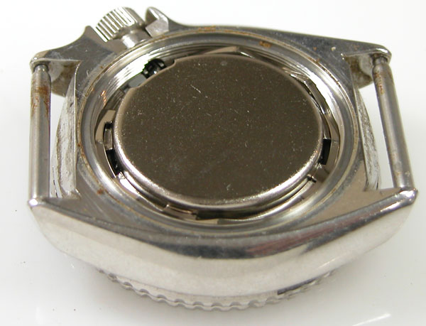 裏蓋を開けると耐磁プレートがムーブメントを覆っています。