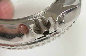 グレーのプラスチックのスペーサーがあるのみ。よってネジ込み竜頭も