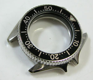 ケースの洗浄は終わってツヤが出ましたね。ダイバーのケースは分厚いステンレス無垢ですからバフ掛けすると綺麗になります。