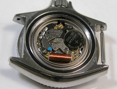 綺麗になったケースにムーブメントを戻して電池格納部をチェックします。