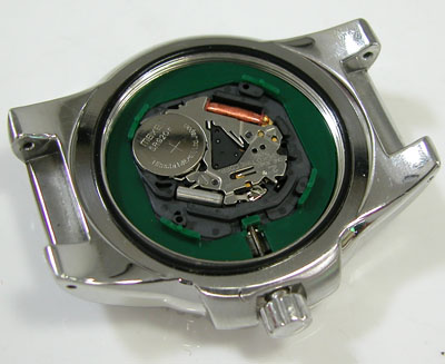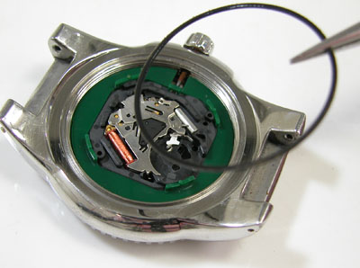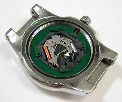 綺麗になったケースにムーブメントを戻して電池格納部をチェックします。