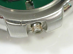 ケースの洗浄は終わってツヤが出ましたね。おや?「電池交換のみ1500円コース」だったのでは?。でも竜頭があの状態では・・・。それにバンドも購入でトータルでは4.000円ですから人道的対応としておきますか。