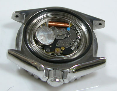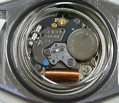 綺麗になったケースにムーブメントを戻して電池格納部をチェックします。