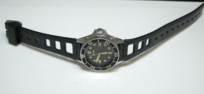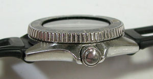 回転ベゼルに、ねじ込み竜頭はダイバー仕様。裏蓋はスクリューバック。