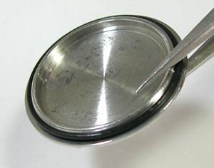 綺麗になったケースにムーブメントを戻して電池格納部をチェックします。