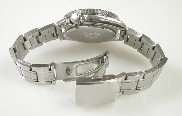 裏蓋を開けると耐磁プレートがムーブメントを覆っています。