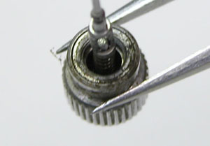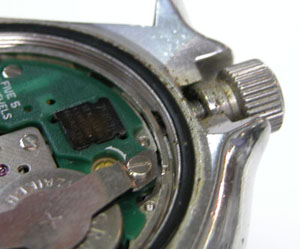 綺麗になったケースにムーブメントを戻して電池格納部をチェックします。