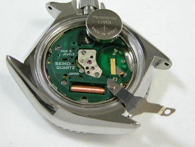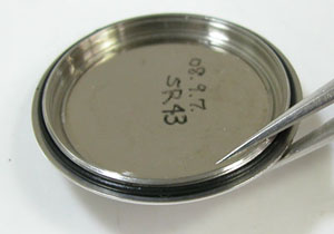 綺麗になったケースにムーブメントを戻して電池格納部をチェックします。電池が「LR43」が入っておりました。