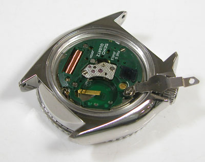 綺麗になったケースにムーブメントを戻して電池格納部をチェックします。
