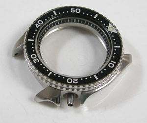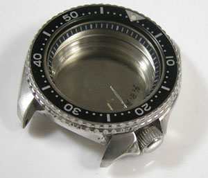 ケースの内側もチェックします。目盛リングがあるのでもそのまま洗浄は出来ず。