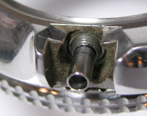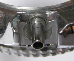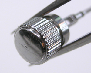 竜頭パイプはピッカピカ!この突起が回転ベゼルが”カチカチ”という仕掛けですね。