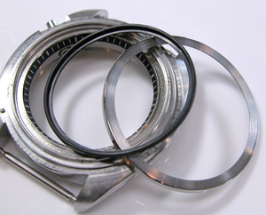 プラスチックとはゆえ、ダイバーですからかなりの厚み。ガラスパッキンとガラスを戻して押さえと回転ベゼルを取り付けます。