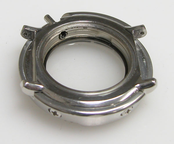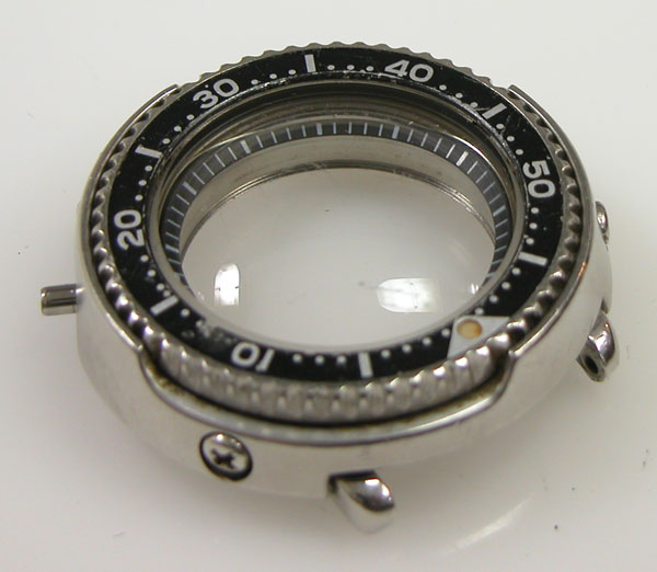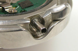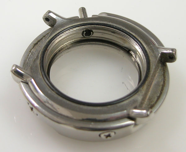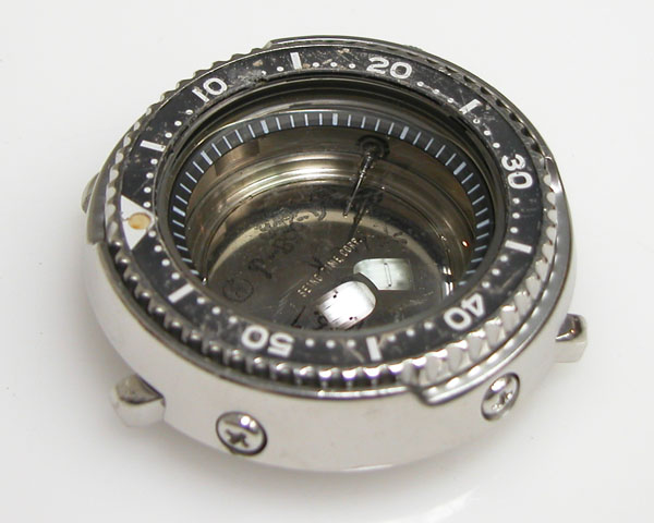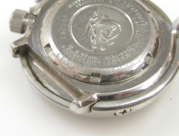 竜頭の動きをチェックして。ベゼルガードがガタガタ動きますがネジが絞まり切らない状態。1本は留まりますから、使用に問題はないでしょう。
