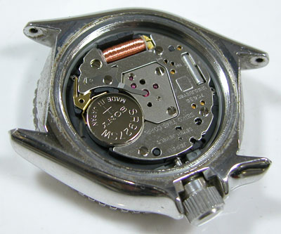 綺麗になったケースにムーブメントを戻して電池格納部をチェックします。