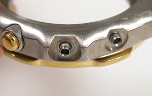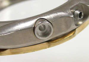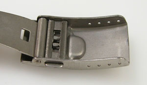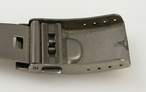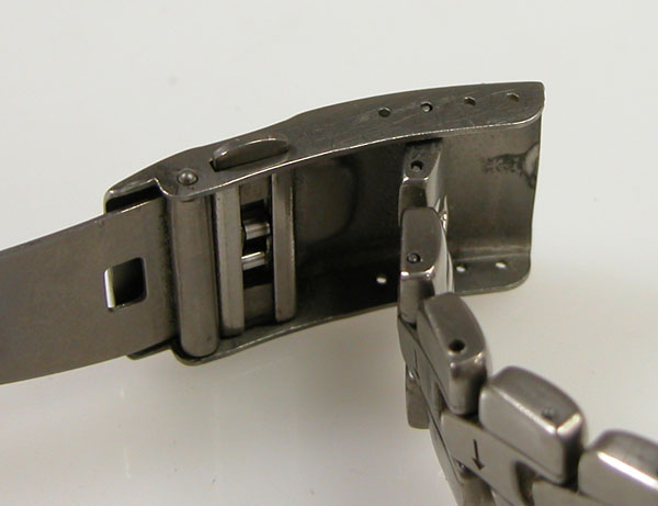 チタン無垢バンドに三つ折れプッシュバックルはダブルロック。