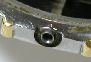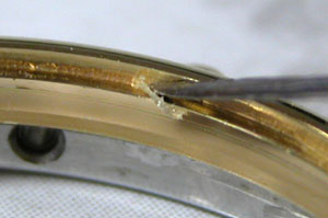 竜頭パイプを掃除します。この程度まで掃除しておきます、ガラスの接着し直しを行いますから、どのみちケースもベルトも後で洗浄機で洗いますから。