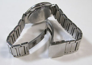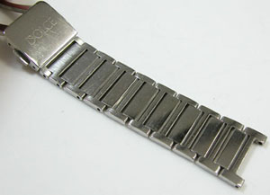 ステンレス無垢バンドに三つ折れプッシュバックル。
