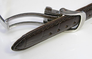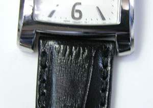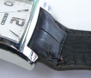 ラグ部に当たる部分の革を堅くして一体感を出していますから、これは交換となると専用バンドしか合わないでしょう。ただ今回は既製での交換依頼ですが合う物があるか?