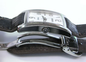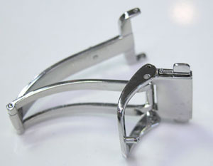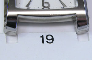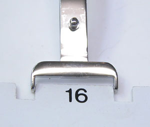 さて既製バンド交換ですがラグ部と尾錠部の幅を測ります。ラグ部の幅は手前と奥では違う特殊な構造ですが専用バンドを取付る前提で作られていますから仕方がありません、奥の幅に合わせます。