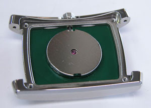 裏蓋を開けると耐磁プレートがムーブメントを覆っています。