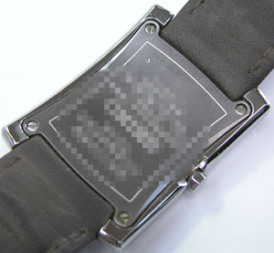 裏蓋は4本ネジで留まっていて右が裏蓋記載。