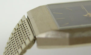 スライド。バックルに超硬質風ミラー仕上げ。ケースが超硬質ケースなのでブレスも同じような光沢にするのが流行った時期がありました。