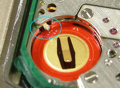 綺麗になったケースにムーブメントを戻して電池格納部をチェックしますが・・。