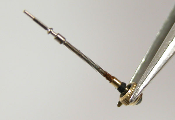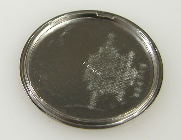 水滴が染みこんで表面が錆びただけの様です。ただ竜頭パッキンが痛んでいるには違いない。