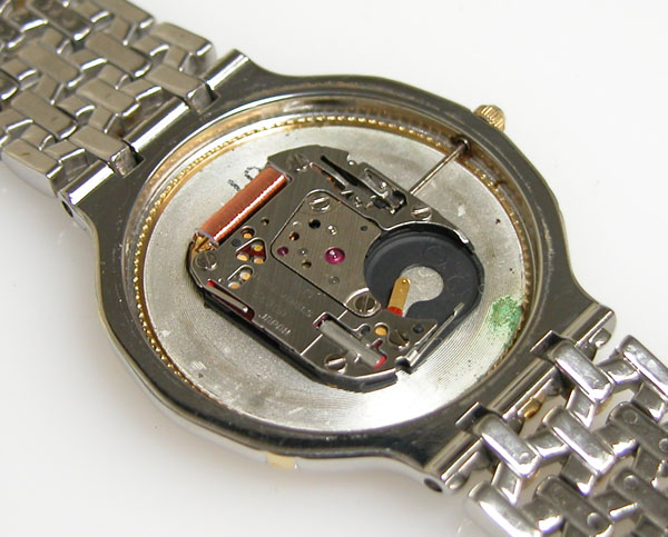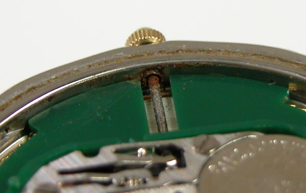 綺麗になったケースにムーブメントを戻して電池格納部をチェックします。
