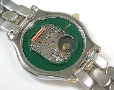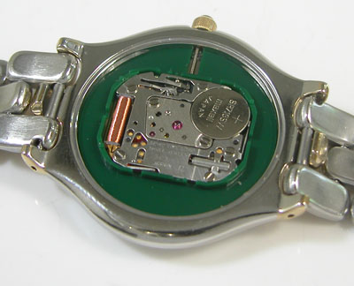 綺麗になったケースにムーブメントを戻して電池格納部をチェックします。