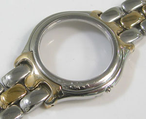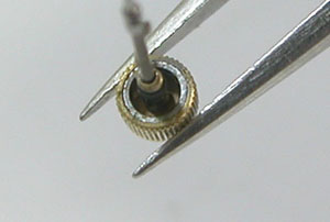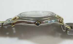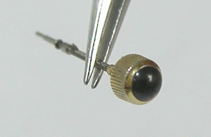 竜頭の先端にはオニキスが。良くオニキスのみ外れたのが持ち込まれますが使用に問題はありません。直すには「竜頭交換」しか方法はありませんが1万円近く掛かるでしょう。
