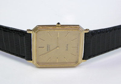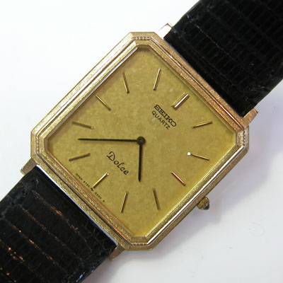 薄型クォーツ全盛期の腕時計。