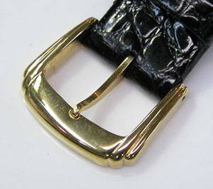 硬質ケースにサファイアガラス、そしてオニキス竜頭ですね。尾錠はオリジナル。