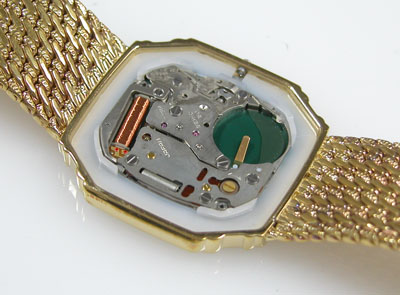 綺麗になったケースにムーブメントを戻して電池格納部をチェックします。