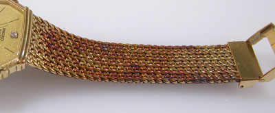 さてケースの洗浄は終わってツヤが出ましたが変色は取れず。更に研磨剤で磨いてから再度洗浄ですが、磨くといってもメッシュ状なので凹んだ箇所までは磨けない。