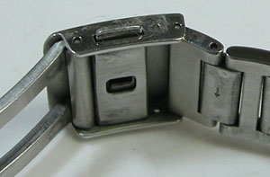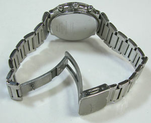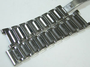 ステンレス板巻きバンドに三つ折れバックル。バックルの保護フィルムはもう剥がさないといけません。
