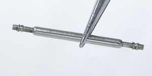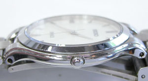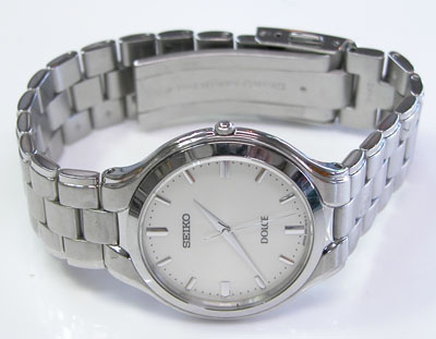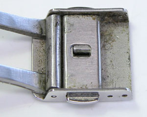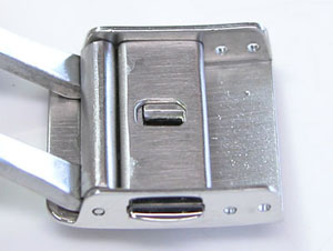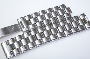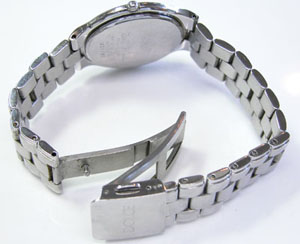 ステンレス無垢バンドに三つ折れプッシュバックル。
