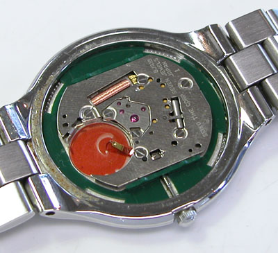 綺麗になったケースにムーブメントを戻して電池格納部をチェックします。