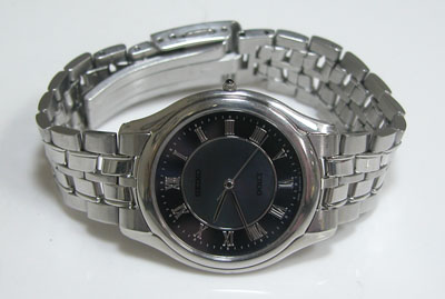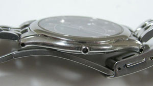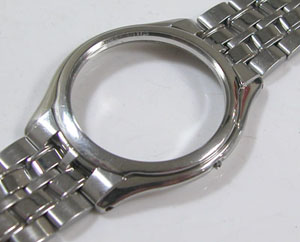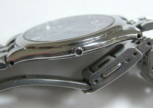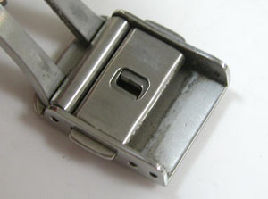 ステンレス無垢バンドに三つ折れプッシュバックル。