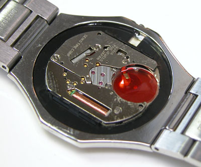 綺麗になったケースにムーブメントを戻して電池格納部をチェックします。