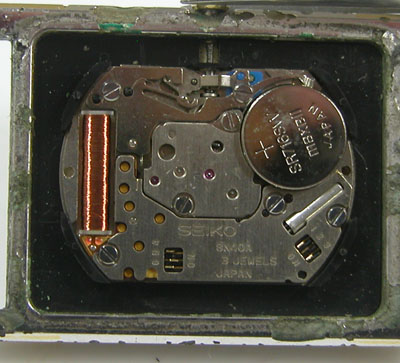ムーブメント拡大。もう電池交換だけでは錆びた粉がムーブメントに混入しそうですか。
