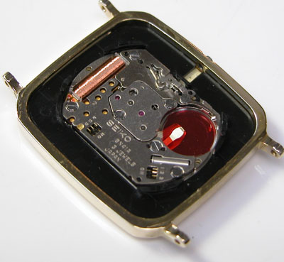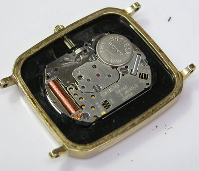綺麗になったケースにムーブメントを戻して電池格納部をチェックします。