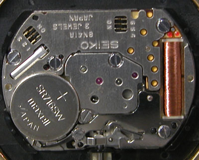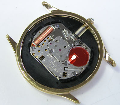 綺麗になったケースにムーブメントを戻して電池格納部をチェックします。
