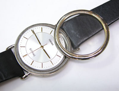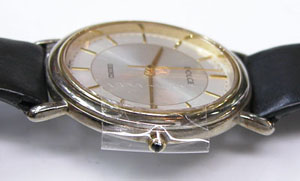竜頭がバッサリ切れていますが、これは裏蓋のはめる位置を間違えて閉めたが為でしょう。